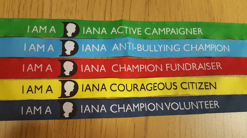 Bright and colourful, festival-style wristbands with your Diana Award Holder's Category emblazoned across it.